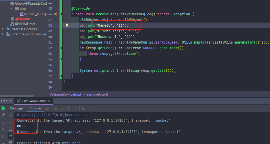 OK,找到了返回正常的原因,当我把 GameId 改成假数据时,如我所愿,返回了一个 null。