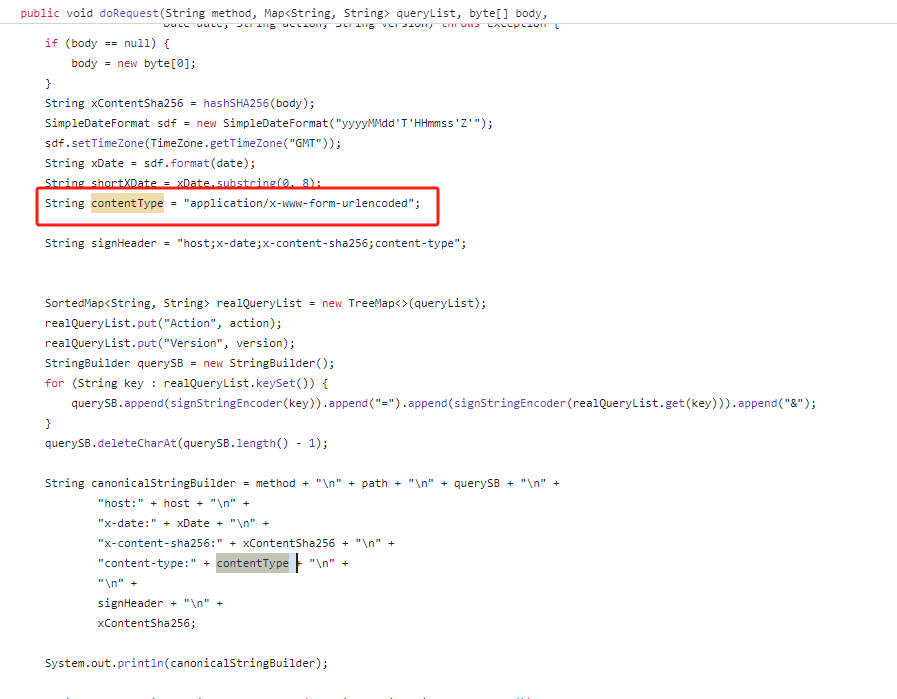 String signHeader = "content-type;host;x-content-sha256;x-date";