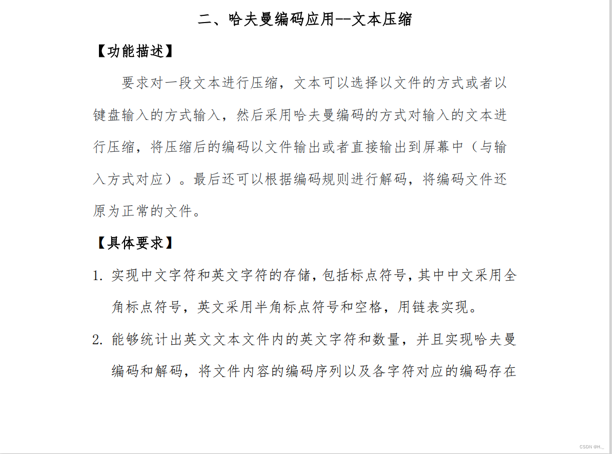 大一下学期期末数据结构项目设计-哈夫曼编码压缩文本,目前这个项目仍有缺陷,不能正常地输出中文字符参与哈夫曼编码压缩文本运算;