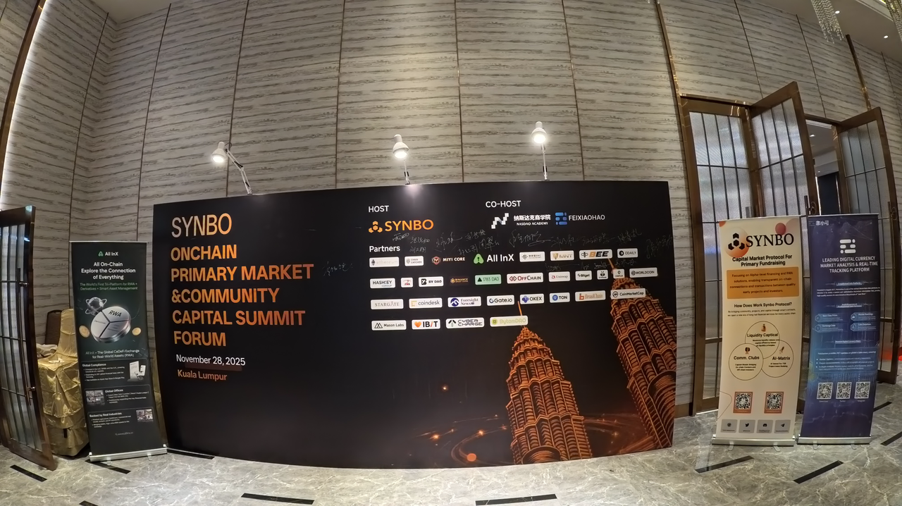 2025年11月28日,“Synbo全球一级市场社区资本大会暨Synbo产品发布会”在吉隆坡主会场正式开启。大会由 Synbo联合纳斯达克商学院、非小号等机构共同主办,吸引了来自以太坊基金会、Chain Catcher、All InX、ODAILY、MIYI CORE 等机构的代表、技术团队、创业者与投资人齐聚一堂,共同见证以“链上一级市场”为核心叙事的新金融基础设施诞生的重要时刻。现场不仅座无虚席,连走廊区域都站满了参与者,显示出Web3行业对“资本机制重构”这一议题的强烈关注。