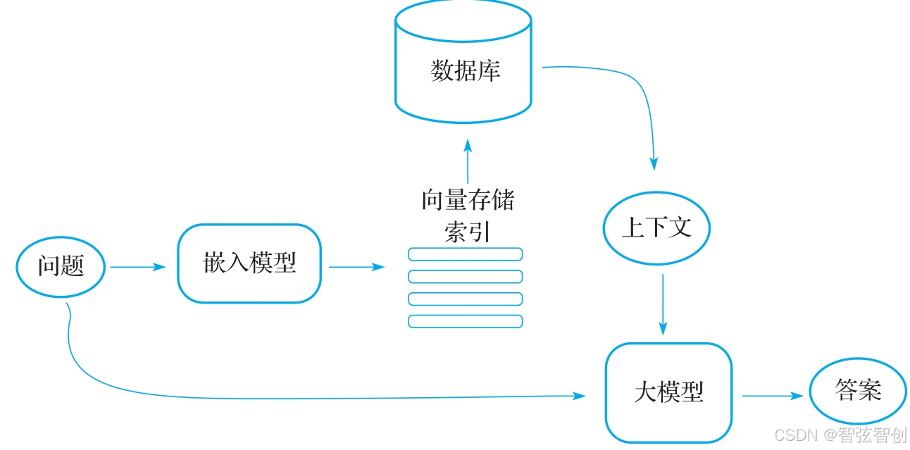 结合图1,我们可以这样理解RAG技术:它就像给大模型找了个机灵的资料管理员。想像一个图书管理员在接到读者问题时,会把它转化为关键词(通过嵌入模型),先根据图书目录(向量存储索引)跑遍整个图书馆(数据库)查找相关书籍,再把关键段落(上下文)贴在问题本上,最后才让大模型根据这些资料写答案。