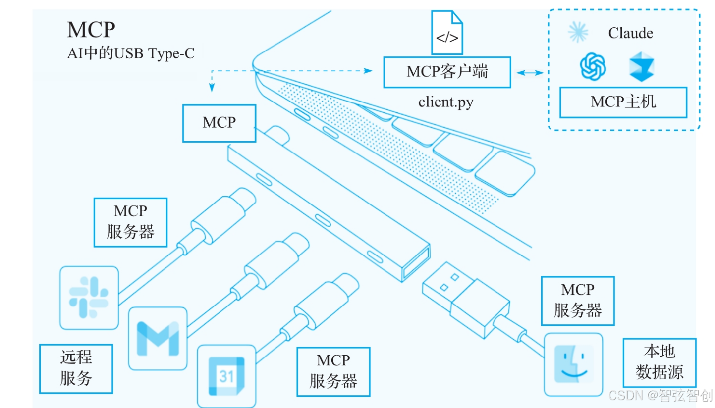这个设计解决了AI开发者的头疼事:过去每对接一个新系统(比如银行数据或工厂传感器),都要重新设计专用接口,就像给每个电器单独制造充电器一样。现在有了MCP,AI应用只需学会“通用插座”的使用方法,就能即插即用地连接: