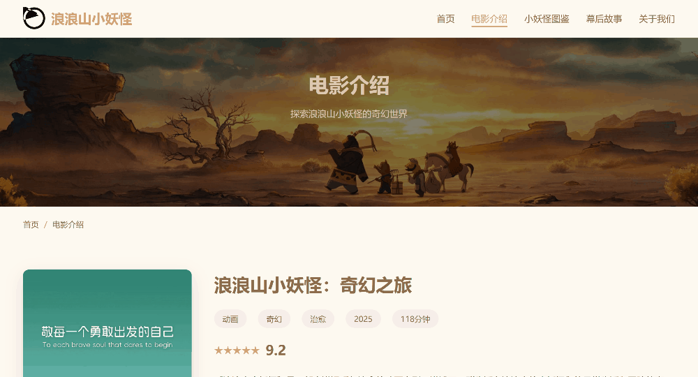 <p>浪浪山小妖怪团队致力于创作温暖治愈的动画作品,希望通过我们的作品传递快乐与希望。</p>