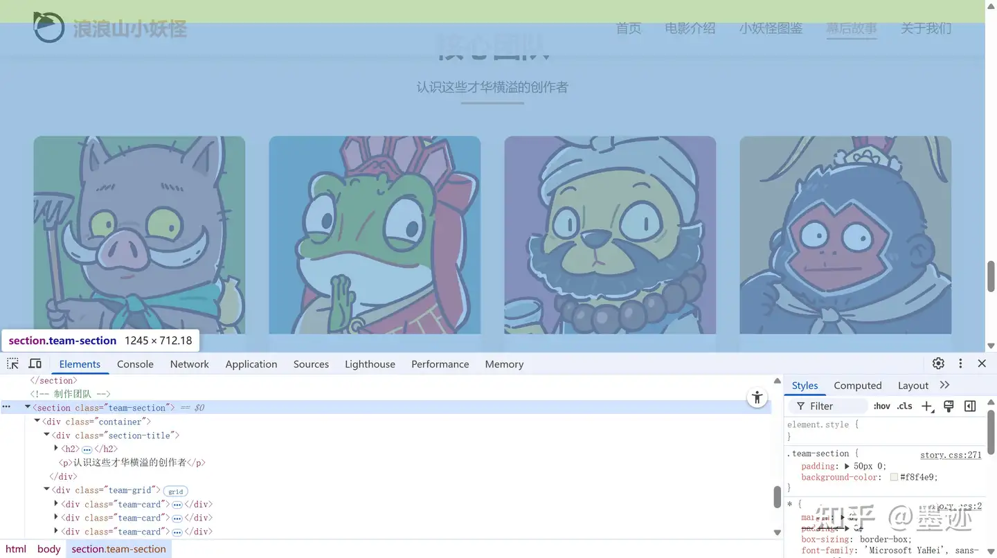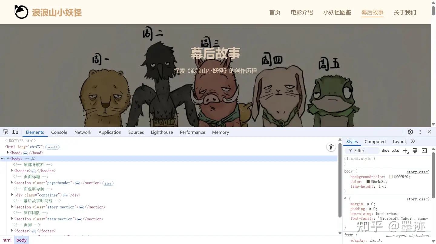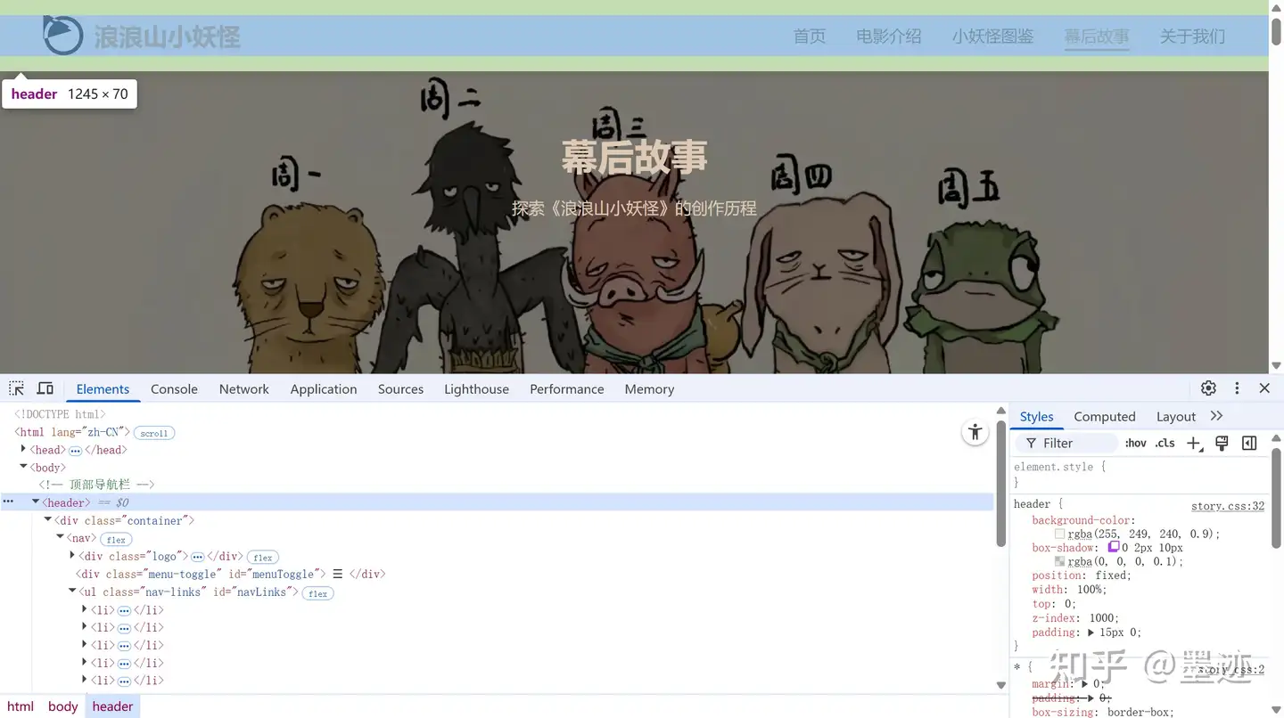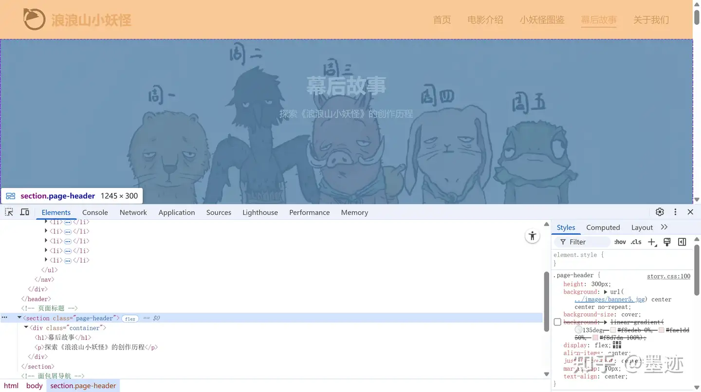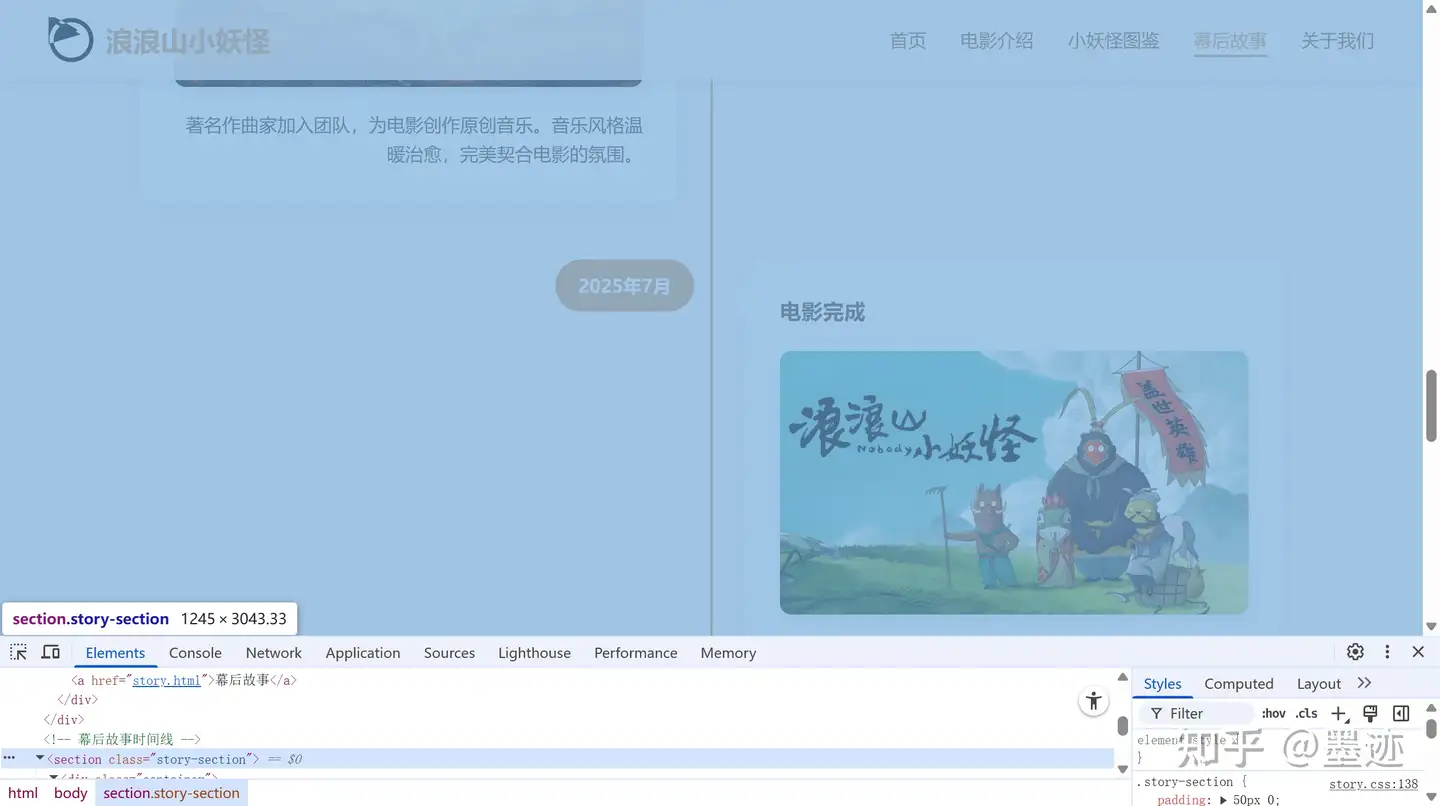 近期,我看了浪浪山小妖怪,就想着做一个完整的浪浪山小妖怪主题网站的幕后故事页面实现,使用纯HTML5和CSS3,没有引入任何第三方库,并包含响应式设计。