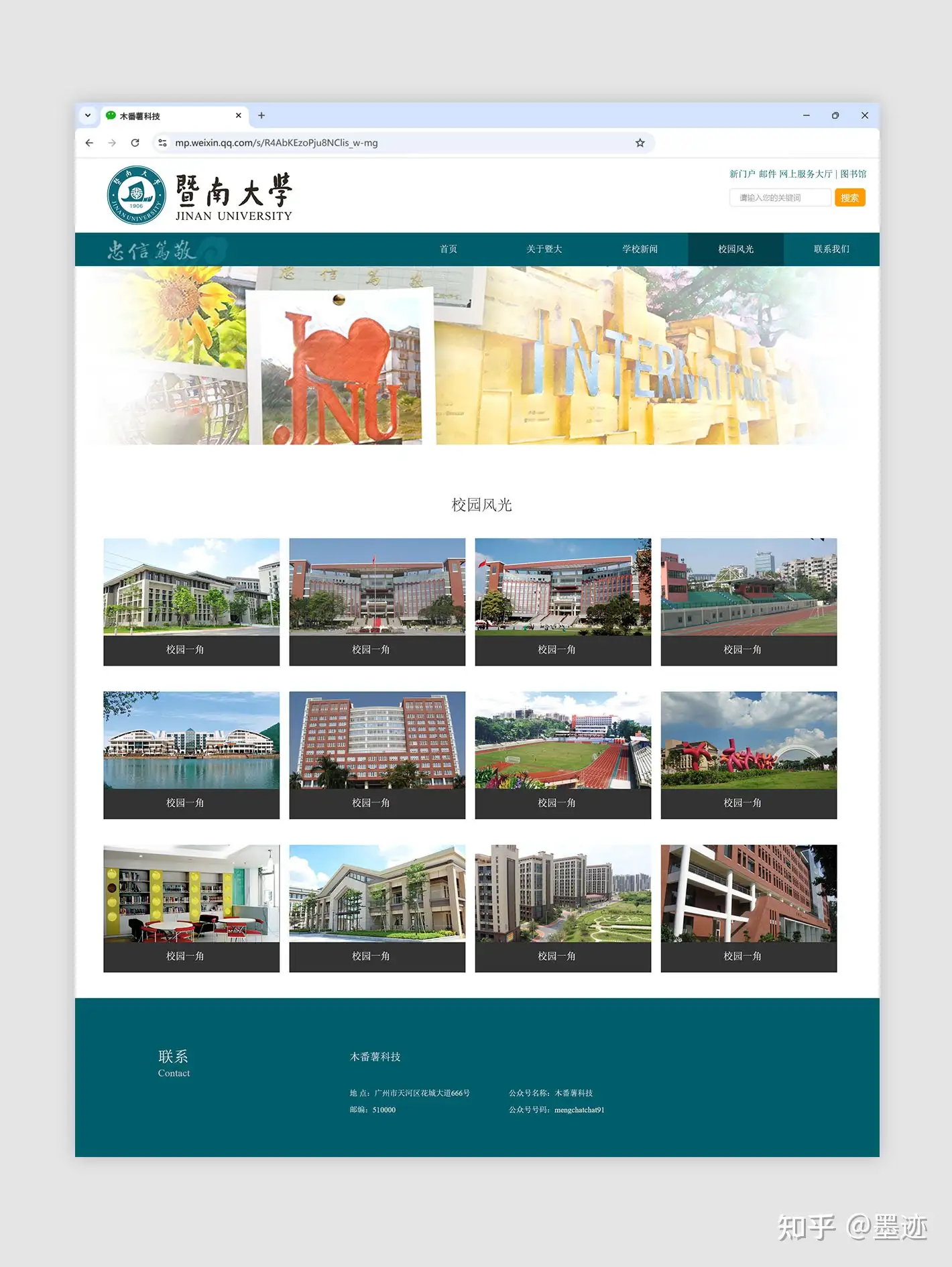 - 校园风光页面:通过精美的图片展示学校的校园环境、教学设施、图书馆、体育馆等,让用户领略学校的美丽和现代化。