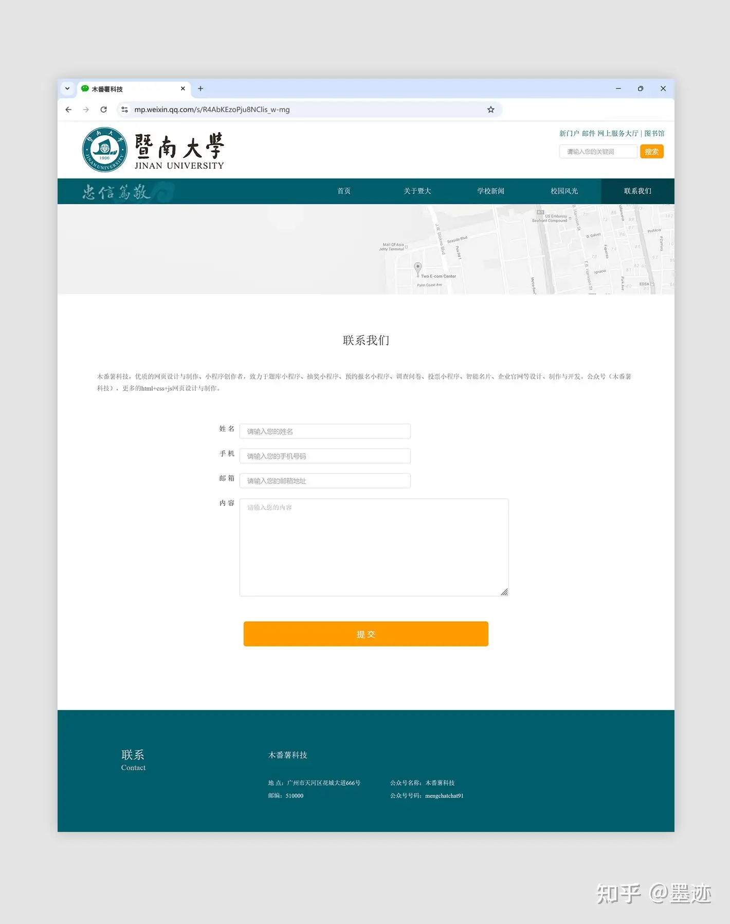 - 联系我们页面:提供学校的联系方式,包括地址、电话、邮箱等,方便用户与学校进行沟通和交流。同时设置输入表单,用户可以提交咨询、建议或反馈信息。