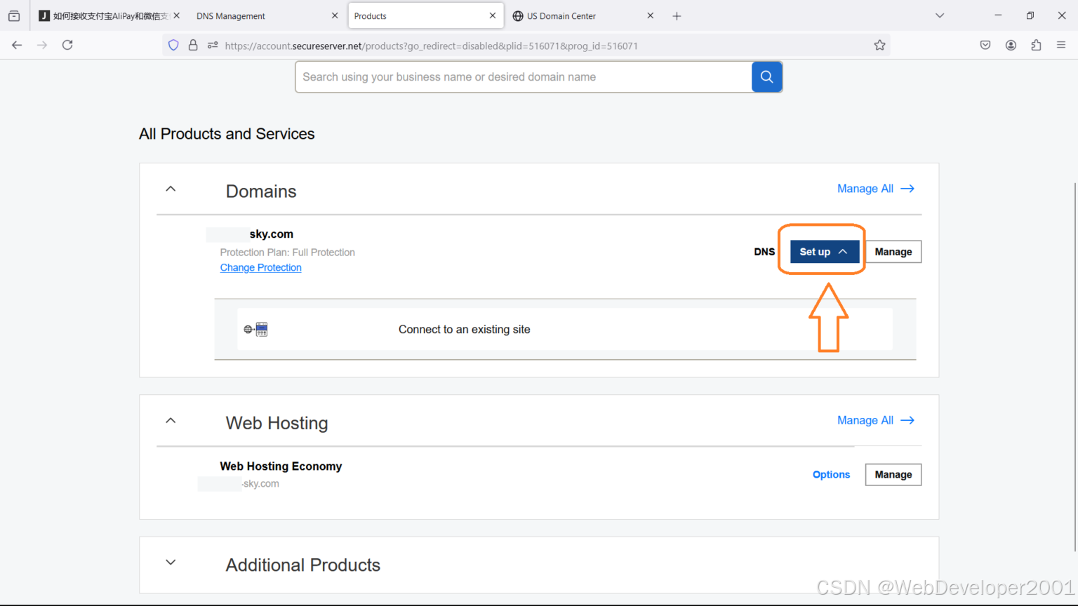 第3步: 回去在产品中心 All Products and Services,点击 Domains 右边的 Set up.