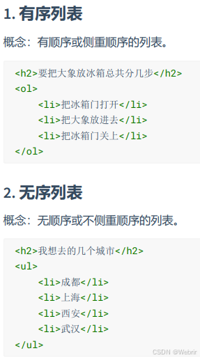 注:li 标签最好写在 ul 或 ol 中,不要单独使用。