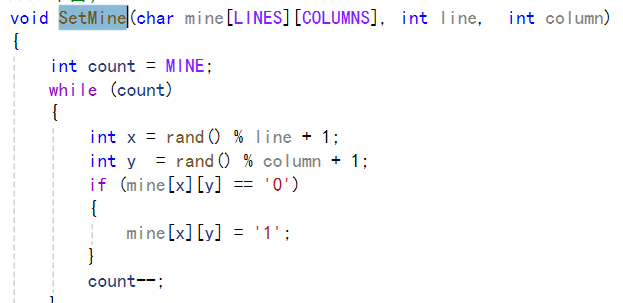 5,后面再对棋盘进行布雷代码实现,在头文件将雷的个数设置为常量,为了使雷的布局具有随机性,这里使用rand函数,但是必须在每次程序运行时对种子进行初始化,使得每次程序生成的随机值不同;