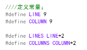 4,为了能让棋盘的布局后续能轻松的进行扩展,这里将数组的行数及列数设置成常亮,为了更好的统计边缘坐标的雷的总个数,将9 x 9的棋盘扩大一维,也就是11 x 11,但游戏的真正的布局还是9 x 9.