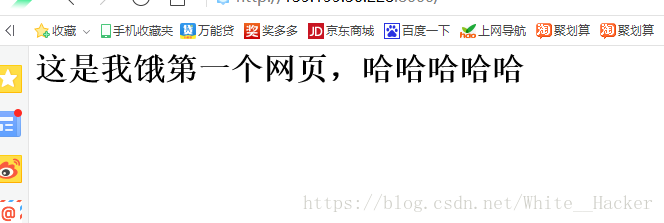 ubuntu@VM-0-6-ubuntu:~/First$ python manage.py runserver 0.0.0.0:8000 Performing system checks... System check identified no issues (0 silenced). May 29, 2018 - 10:44:10 Django version 1.11.1, using settings 'First.settings' Starting development server at http://0.0.0.0:8000/ Quit the server with CONTROL-C.然后进入浏览器,输入你的ip和端口号,就到大功告成啦(这里小编皮了一下私自修改了显示的内容所以请看下图)