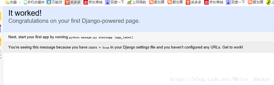 第八步:启动django(一定记住,在你所建的项目目录下启动)