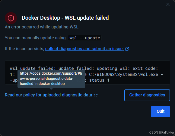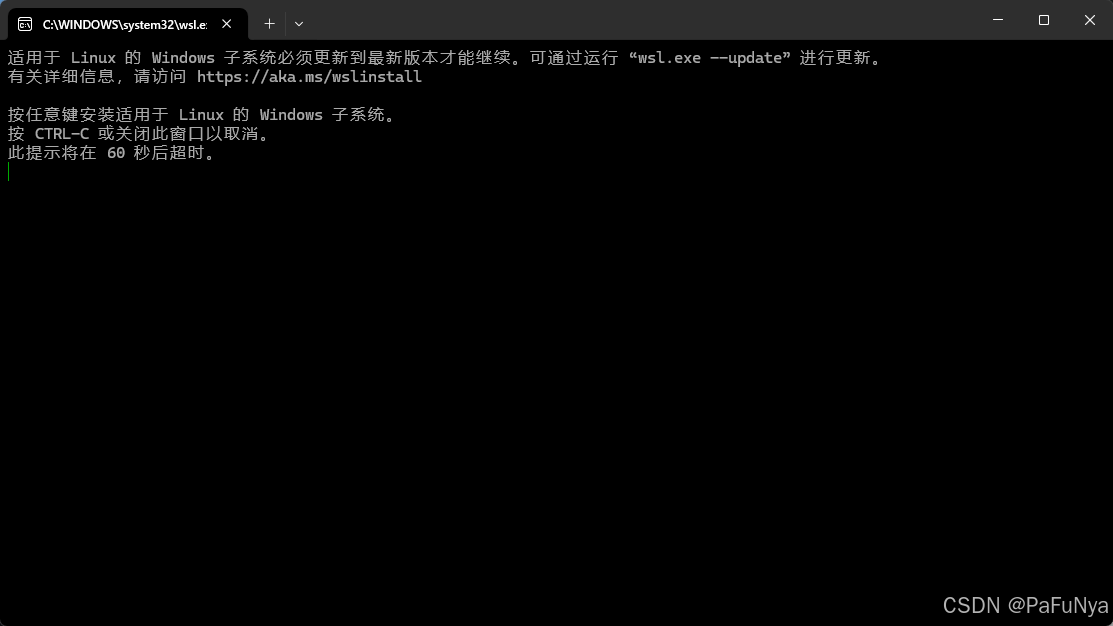 如果你弹了这个,就打开终端,输入-------------其实本质上就跟上面那张图一样的,大概意思就是需要升级WSL,