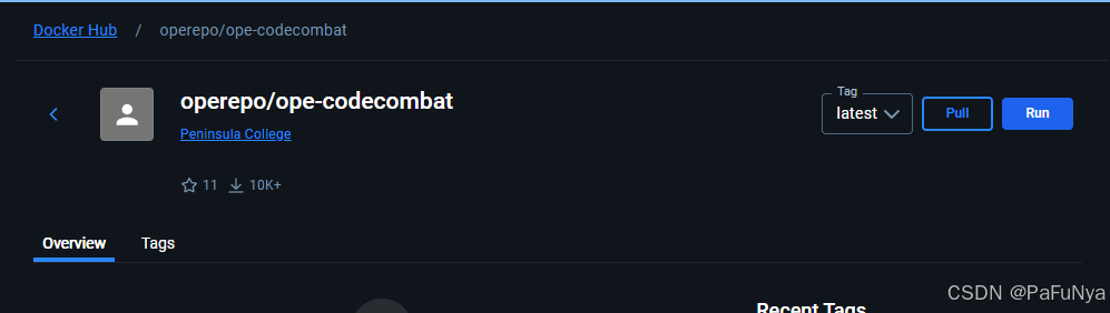 5.进去之后点击左侧的dockerhub,然后搜索codecombat,sort那栏选择popular,我偶们下第二个,也就是operepo/ope-codecombat