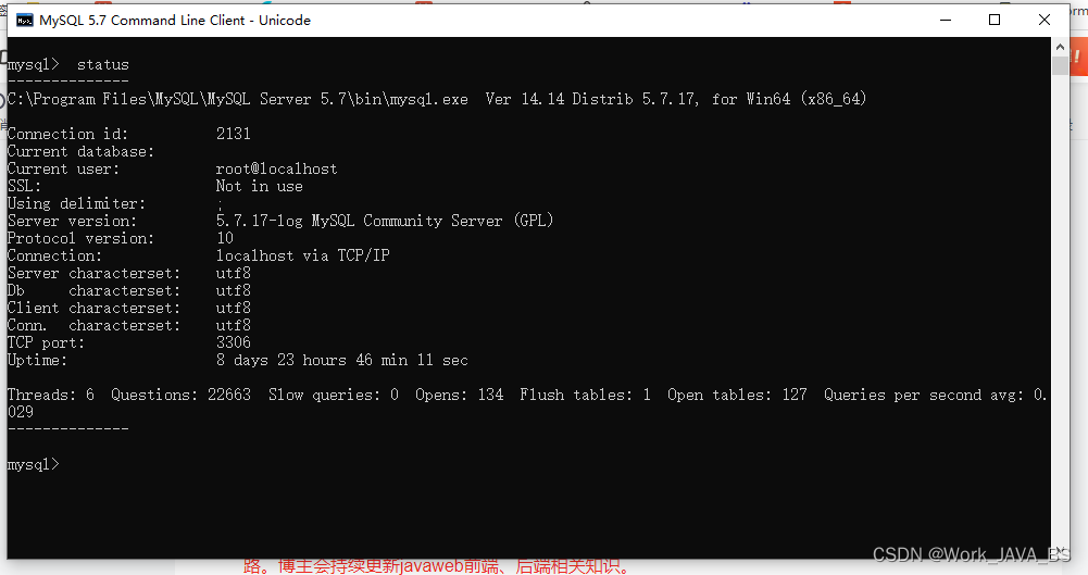 mysql> status