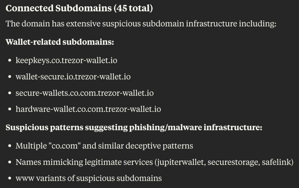 在恶意基础设施调查与威胁狩猎中,它同样非常有用,因为它为 LLM 提供了反向 WHOIS 和历史 DNS 记录访问。下面是研究团队在调查 GreedyBear 攻击时的一个响应示例。