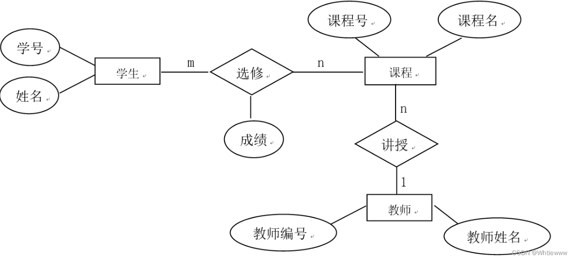 一个教师可讲授多门课,一门课只有一个教师讲授;