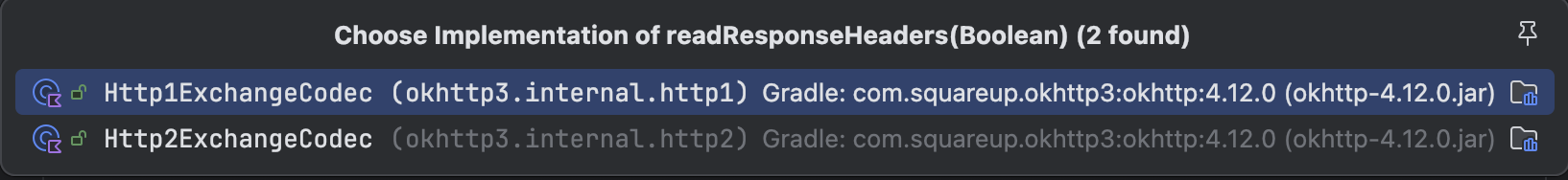 那这个拦截器是怎么拿到response的呢?我们知道主要是readResponseHeaders和openResponseBody()这两个方法来构建response的,我们一直追下去看看