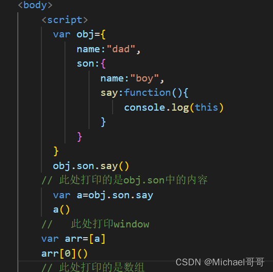 this代表的是 执行这个this代码的环境对象 ;this在脚本中代表的是window全局对象
