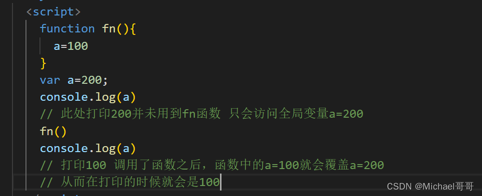 规则1:函数内部的代码可以访问函数内部的标识符,也可以访问函数外部的标识符(副作用)