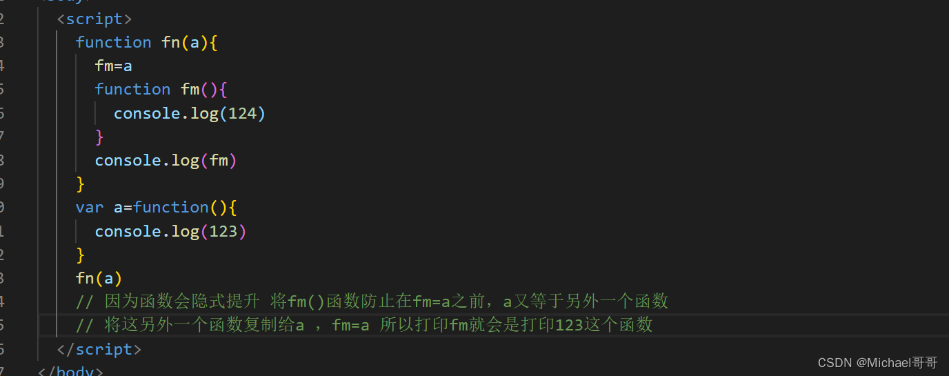 函数也会隐式提升:变量值提升声明,函数提升的是整个函数体