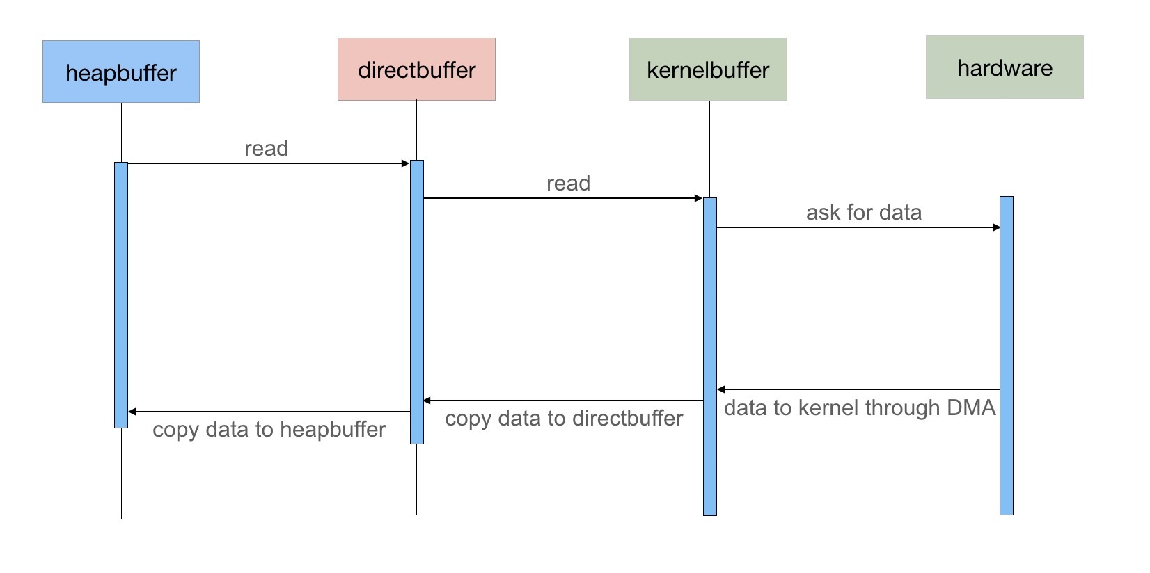 你肯定会在想,为什么 Java 需要通过一个临时的非堆内存来复制数据呢?如果单纯使用 Java 堆内存进行数据拷贝,当拷贝的数据量比较大的情况下,Java 堆的 GC 压力会比较大,而使用非堆内存可以减低 GC 的压力。
