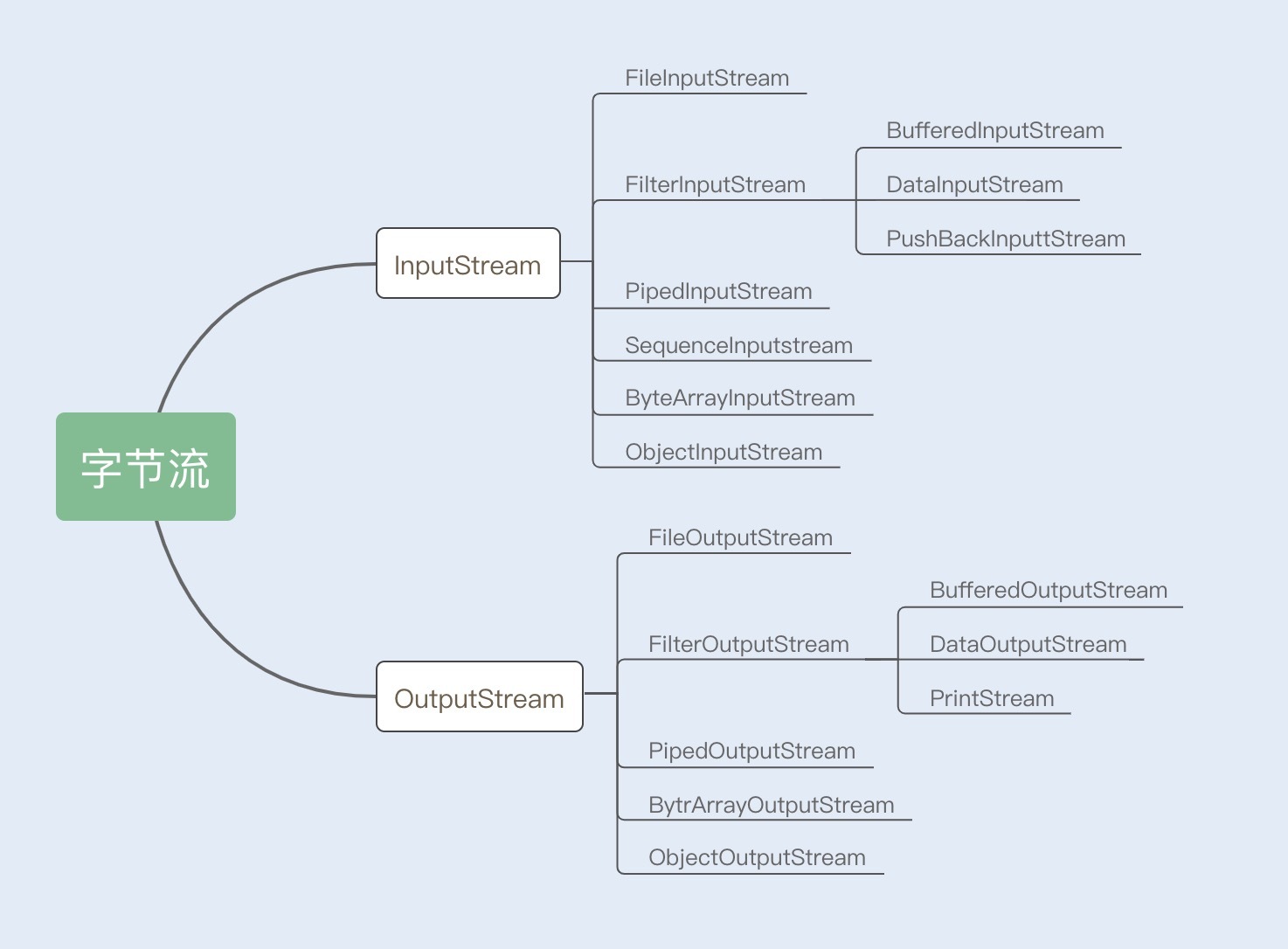 InputStream/OutputStream 是字节流的抽象类,这两个抽象类又派生出了若干子类,不同的子类分别处理不同的操作类型。如果是文件的读写操作,就使用 FileInputStream/FileOutputStream;如果是数组的读写操作,就使用 ByteArrayInputStream/ByteArrayOutputStream;如果是普通字符串的读写操作,就使用 BufferedInputStream/BufferedOutputStream。具体内容如下图所示: