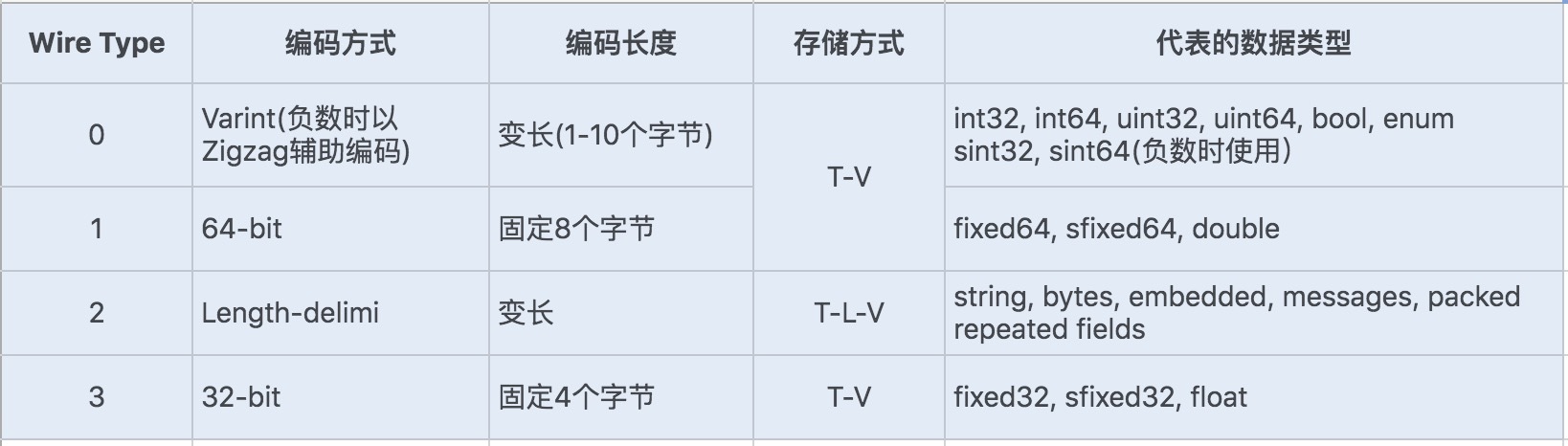 Protobuf 定义了一套自己的编码方式,几乎可以映射 Java/Python 等语言的所有基础数据类型。不同的编码方式对应不同的数据类型,还能采用不同的存储格式。如下图所示: