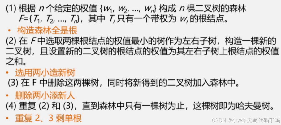 (1)满二叉树不一定是哈夫曼树(2)哈夫曼树中权越大的叶子离根越近 (3)具有相同带权结点的哈夫曼树不唯一