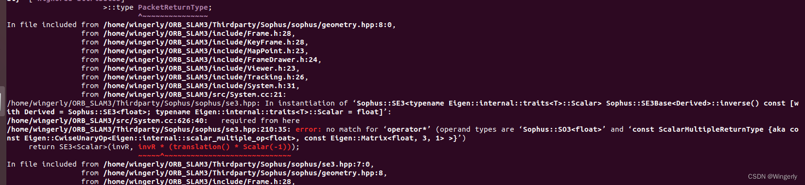 /home/wingerly/ORB_SLAM3/src/System.cc:740:23: error: no match for ‘operator*’ (operand types are ‘Sophus::SE3f {aka Sophus::SE3<float>}’ and ‘Sophus::SE3f {aka Sophus::SE3<float>}’)