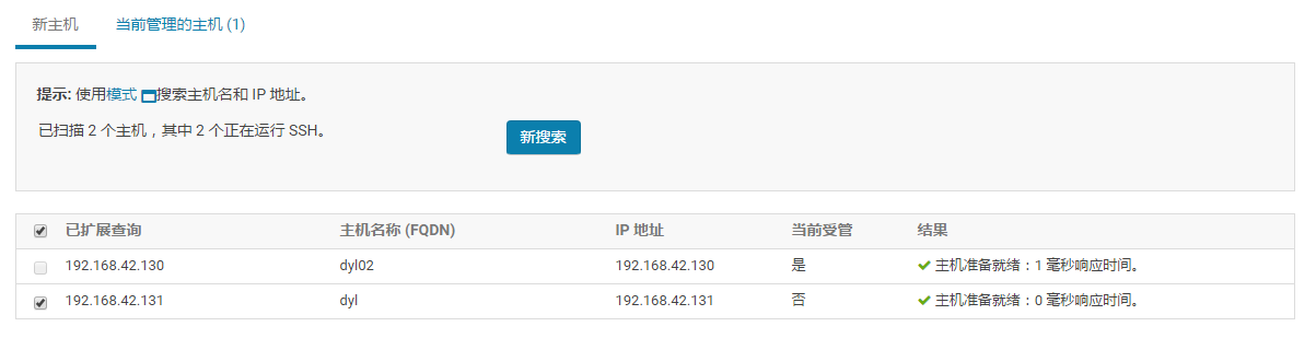 勾选上“当前受管”为否的主机,此时主机“dyl02”因为“当前受管”状态为是,所以无法勾选,这一步先忽略该主机,下一步,显示如下图1.17所示: