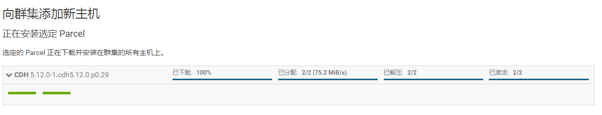 下一步,将会安装CDH集群,这一步,如果没有预先下载CDH包,则首先会下载CDH,这里已经提前下载,所以将会直接安装。等待一段时间,CDH安装完成,如下图1.20所示: