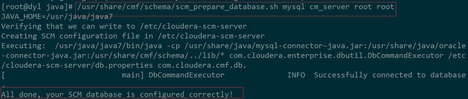 创建数据库之后,运行scm_prepare_database.sh脚本(安装Cloudera Manager Server的服务器上),如下所示:
