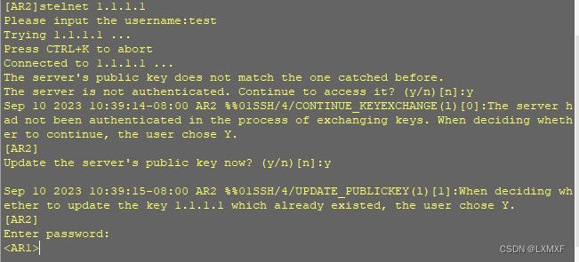[AR1]ssh user test authentication-type password 账户和认证密码关联起来