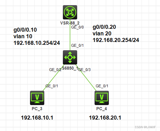 [Huawei-GigabitEthernet0/0/0.20]ip add 192.168.20.254 24