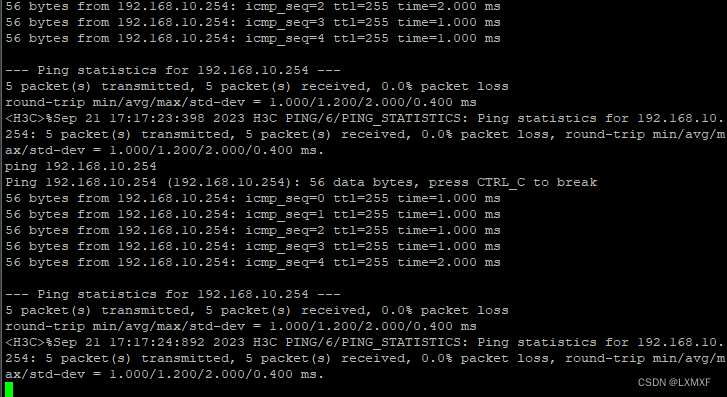 [H3C-GigabitEthernet0/0/0.10]ip add 192.168.10.254 24 配置IP地址