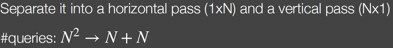 对于解决一个大kernel,一种解决方法是在一个方向上做滤波再再另一个方向上滤波