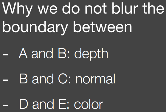 但考虑到噪声也可能使得颜色差别大,我们可以使用G-buffer,因为G-buffer是没有噪声的。