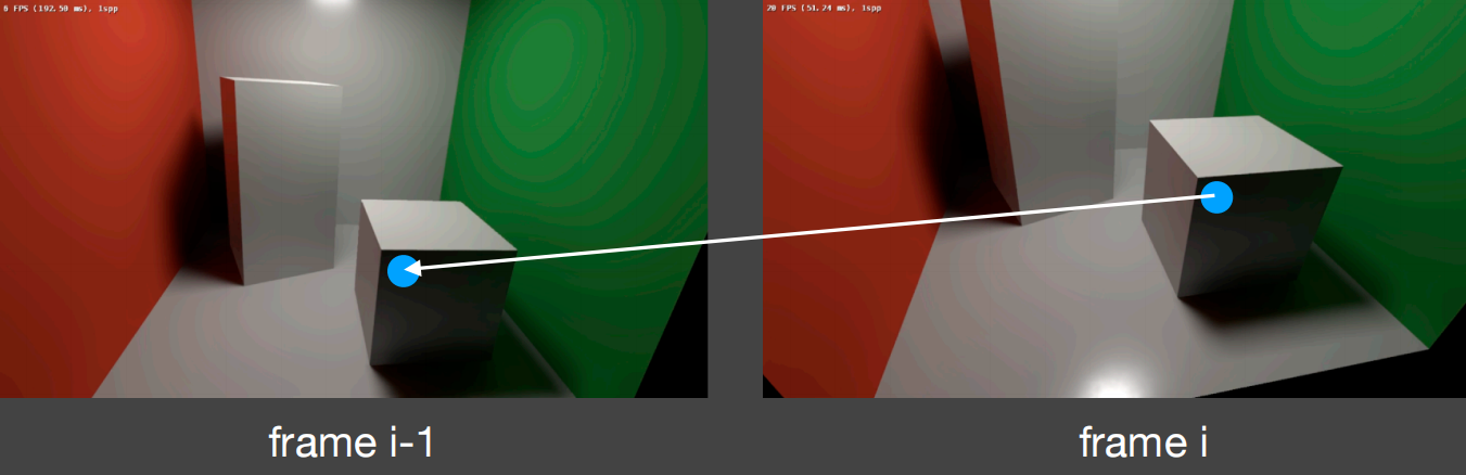 假设前一帧已经降噪并重用来给这一帧降噪,使用运动向量再找到之前的位置
