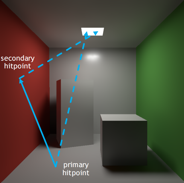 一次SPP光线追踪等于初级光栅化+初级可见光线+二级弹射光线+二级可见光线