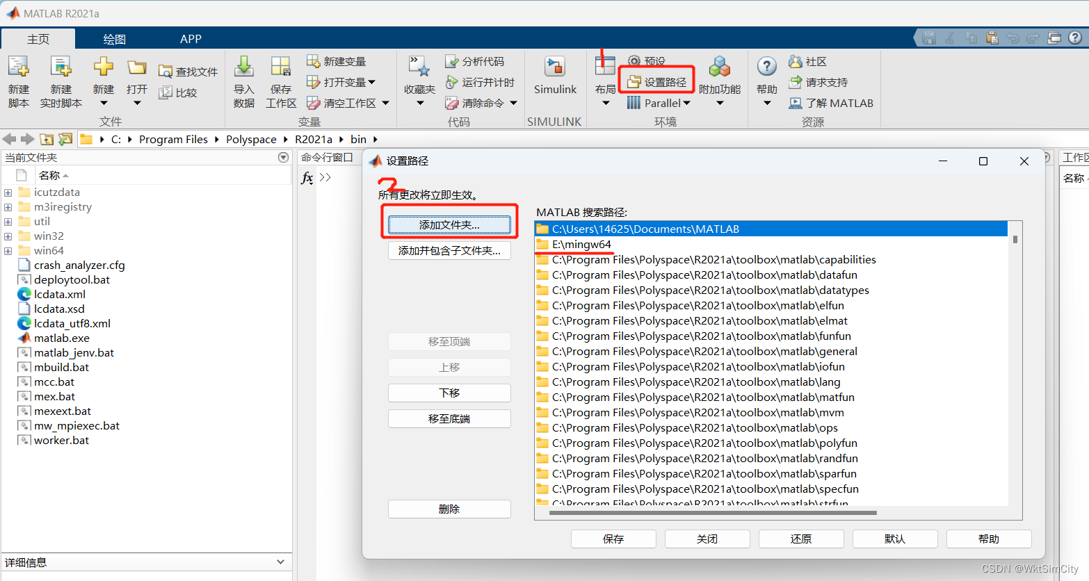 4.打开MATLAB R2021a,点击最上面一块的设置路径-把步骤2的目录添加进去