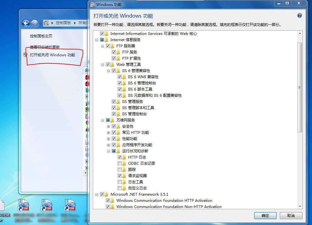 二、单击左侧的 打开或关闭Windows功能按钮,勾选上如图所示的选项