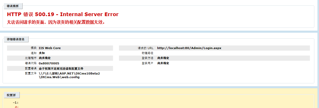 5.由于扩展配置问题而无法提供您请求的页面。如果该页面是脚本,请添加处理程序。如果应下载文件,请添加MIME映射。