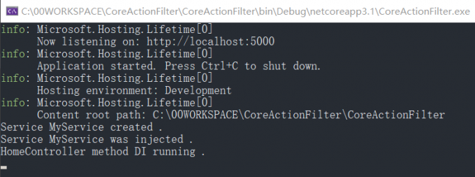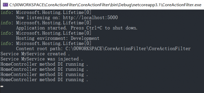 运行一下,多次在浏览器中访问对应的action的path,可以看到FilterInjectAttribute的构造函数只会执行一次。