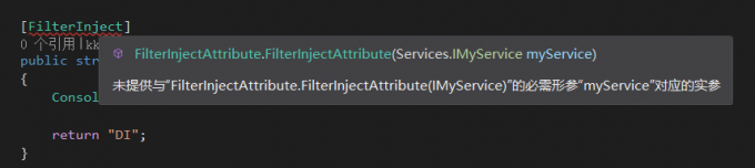 演示一下,首先自定义一个ActionFilter,通过构造函数注入IMyService: