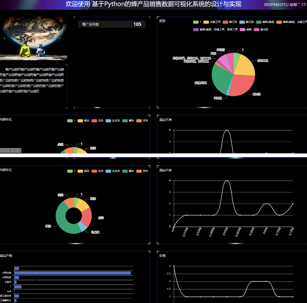 系统阐述的是一款基于Python的蜂产品销售数据可视化系统的设计与实现,对于Python、B/S结构、MySql进行了较为深入的学习与应用。主要针对系统的设计,描述,实现和分析与测试方面来表明开发的过程。开发中使用了 django框架和MySql数据库技术搭建系统的整体架构。利用这些技术结合实际需求开发了具有个人中心、用户管理、蜂产品管理、系统管理等功能的系统,最后对系统进行相应的测试,测试系统有无存在问题以及测试用户权限来优化系统,最后系统达到预期目标。