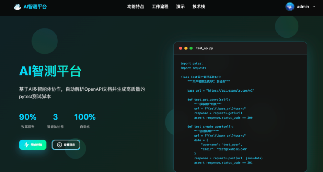 •标准化技术栈:基于Python、AutoGen、requests、pytest等主流测试开发技术栈,确保稳定性、可靠性和良好的可扩展性,支持二次开发