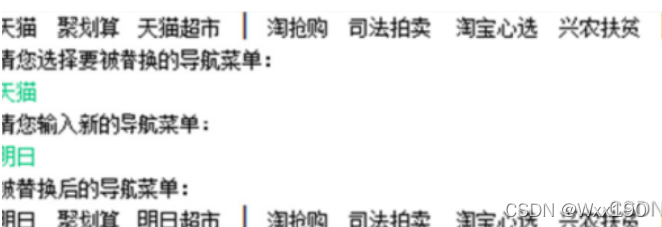 System.out.println("被替换后的导航菜单:\n"+d);//输出提示语