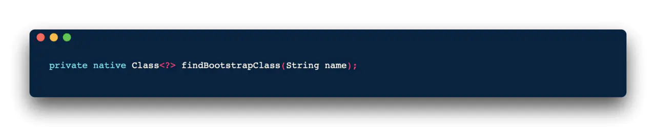 如果采用这种方式的类加载策略,由于双亲托管模型的存在,最终都会将类的加载任务交付给Bootstrap ClassLoader进行加载。跟踪源代码,最终会调用原生方法: