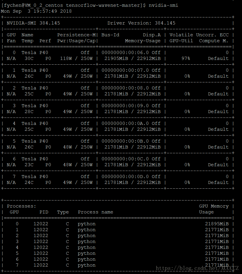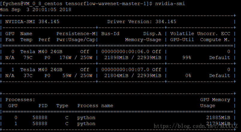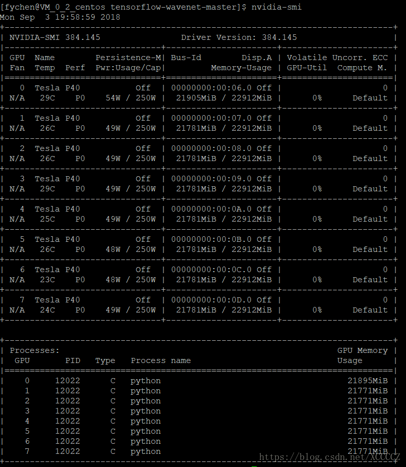2) 就像NVIDIA宣传的那样,P40相对M40来说,长时间跑时,P40温度和功耗比M40低不少。另外,我试过在两台服务器上限制训练时都只使用两块GPU来对比性能,发现P40比M40计算速度也确实快了不少。